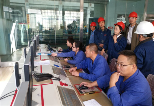 (评审组在生产现场体验、核查吉兰泰的信息化建设情况)