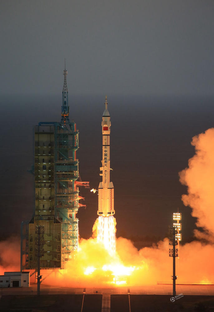 10月17日7时30分,搭载着神舟十一号载人飞船的长征二号F遥十一运载火箭在酒泉卫星发射中心点火升空。记者 李刚 摄 (来自:新华网)