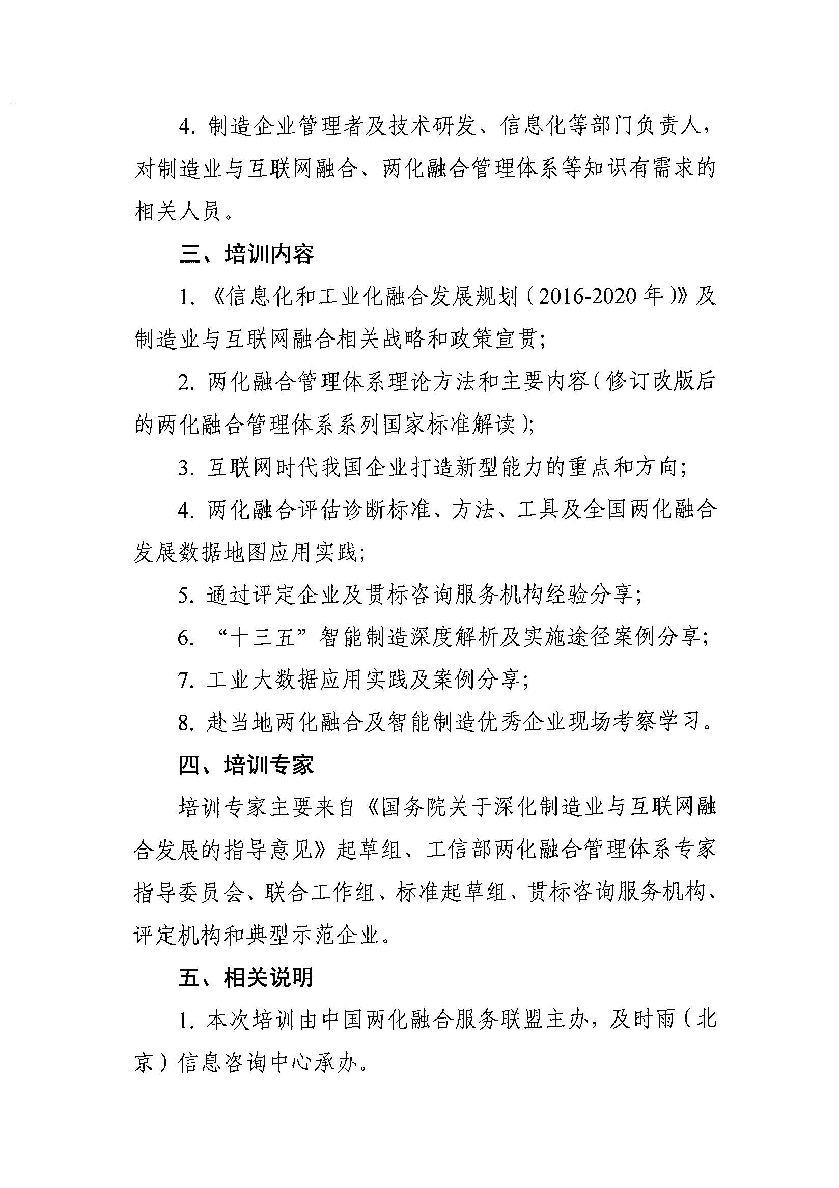 关于举办2017年制造业与互联网融合发展暨两化融合管理体系专题培训(南京站)的通知