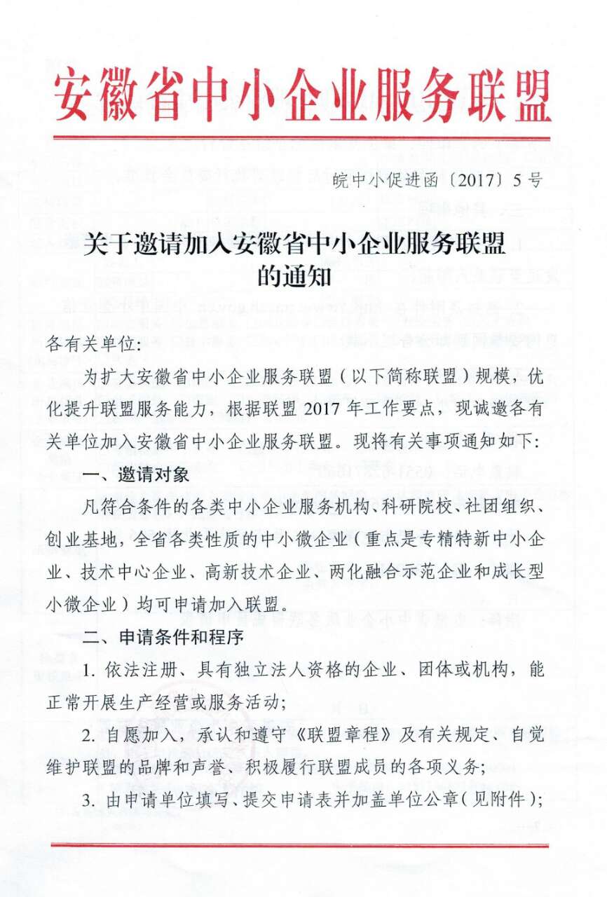 为了更好的服务于安徽及周边企业,经协会会长办公会议研究决定:要求与本协会相关联的企业踊跃加入安徽省中小企业服务联盟。(文件、表格附后,免费)