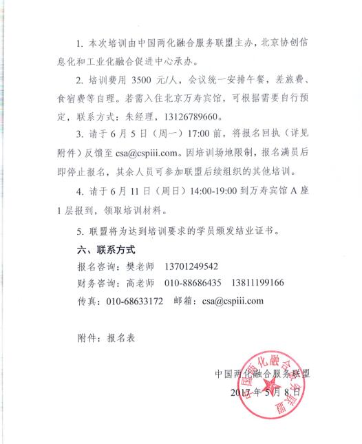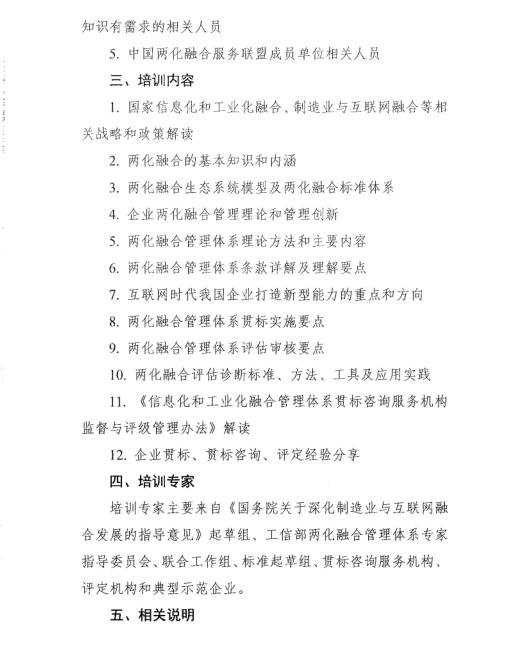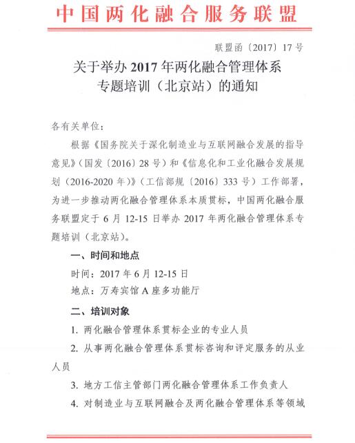 关于举办2017年两化融合管理体系专题培训(北京站)的通知