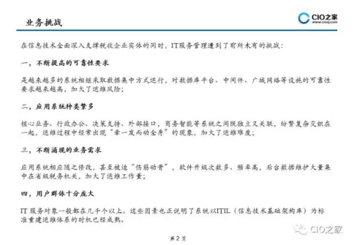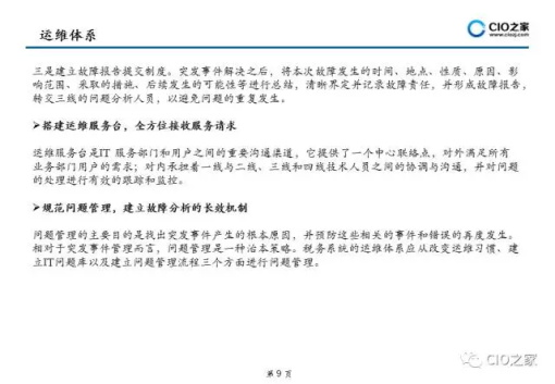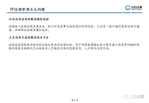 从信息系统的整个生命周期来看,实施建设只占其生命周期的 20%,而其余80%的时间都是对其进行运行维护.实现运维管理从传统被动式服务转变为主动预 防服务,以流程贯穿整个运维管理过程,实现运维管理的 标准化、规范化和流程化是目前企业信息化建设急需解决流程等方面提供指导,帮助用户设计出合适的IT服务解决方案及流程。