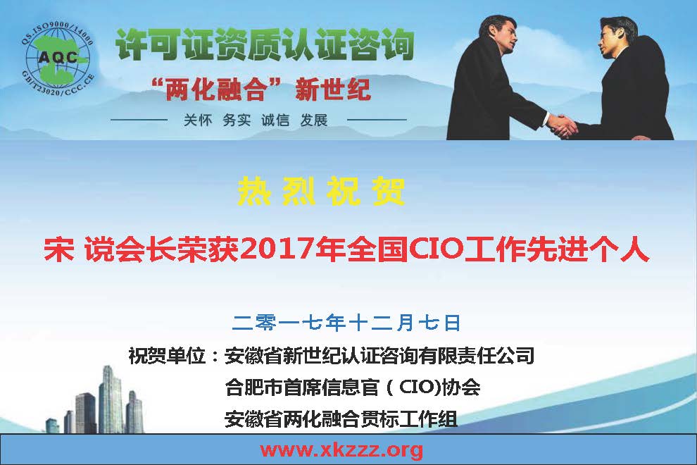 【安徽省新世纪】祝贺宋谠会长荣获2017年全国CIO工作先进个人