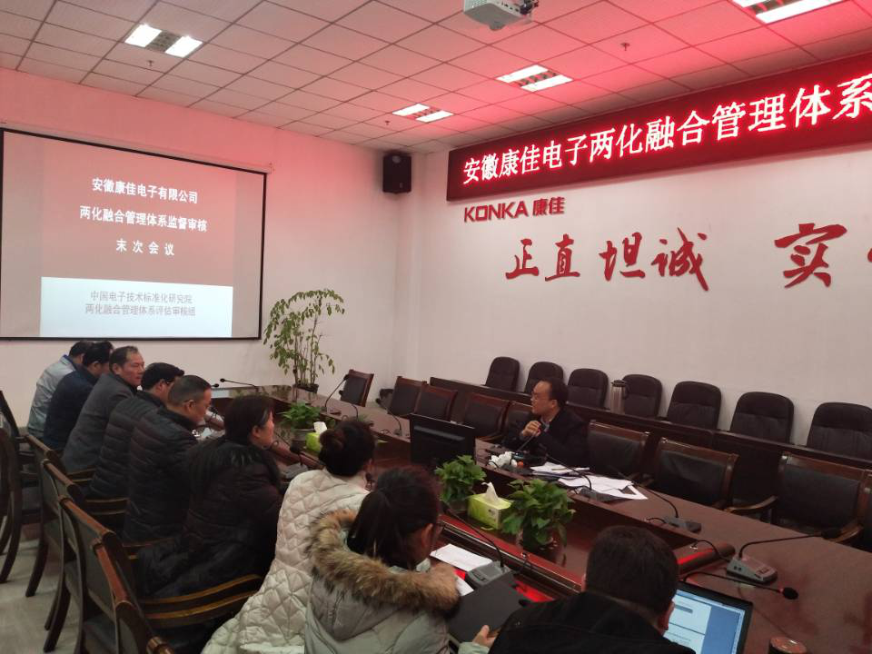 末次会议上,陈强博士根据本次评估审核结论,并宣布安徽康佳电子有限公司通过了评估审核组的两化融合管理体系监督审核,并表示按照《信息化和工业化融合管理体系评定管理办法》规定,将由评定机构组织专家对评估审核组的推荐性意见进行进一步评审,并给出评定结论。公司自两化融合管理体系运行以来,充分利用建立起的体系初步实现战略目标。管理过程在中公司高层带领下,公司各部门进行管理的信息化调整,实现了战略一致性,充分体现了领导的核心作用,达到了全员参与,全员考核的效果,管理过程更加的持续受控,管理全局得到进一步优化。