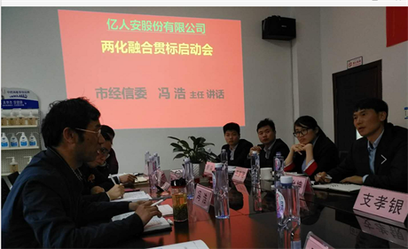 4月10日15:00,安徽亿人安股份有限公司的会议室内,省市区经信部门领导见证和指导的两化融合管理体系贯标启动、培训会议正在隆重召开。公司董事长、总经理、副总经理、CIO、CFO及各部门贯标负责人悉数参加了贯标启动大会。工信部批准的两化融合管理体系贯标辅导机构亳州市中小企业服务中心、安徽省新世纪认证咨询有限责任公司的贯标咨询专家组参会并做了专题辅导。