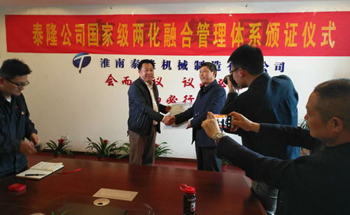 自2015年8月份开始,在东辰集团新的领导班子的坚强领导下,我们紧紧围绕把泰隆公司打造成一流的品牌型专业化公司目标定位,聚焦公司工业化和信息化深度融合,在市、区经信委和安徽省新世纪贯标辅导老师的的大力支持和帮助下,公司两化融合工作稳步推进。两化融合管理体系贯标是企业系统地建立、实施、保持和改进两化融合过程管理机制的通用方法,覆盖企业全局,可以帮助企业依据实现自身战略目标所提出的要求,规范两化融合相关过程,并使其持续受控,以形成获取可持续竞争优势所要求的信息化环境下的新型能力。今天,泰隆公司获此殊荣,我们将倍加珍惜,并以此次两化融合管理体系评定证书授牌为新起点,为持续推进工业化和信息化深度融合,为专业化公司创新转型发展增添新动能。在今后的工作中,重点做好以下两个方面: