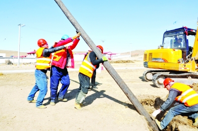 在乌兰察布察哈尔右翼后旗锡勒白银卜浪村,记者正好赶上刚开工不久的移动公司正在施工,深刻感受到了“冻土”的威力。轰隆隆!轰隆隆!挖掘机冒着黑烟,铲斗一次次凿向还没有完全解冻的黄土地,几番周折后,一根即将架设光纤的油杆在四五个施工人员的吆喝使劲下立在了村头。为了这方圆十几公里内的一两户人家能用上宽带,施工队还要再立上百根油杆。