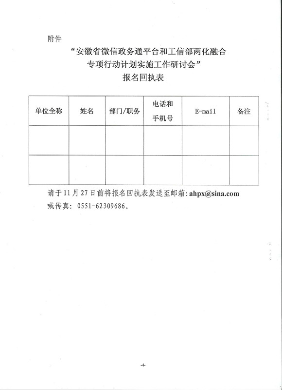 关于参加“安徽省微信政务通平台和工信部‘两化 融合专项行动计划’实施工作”研讨会的通知